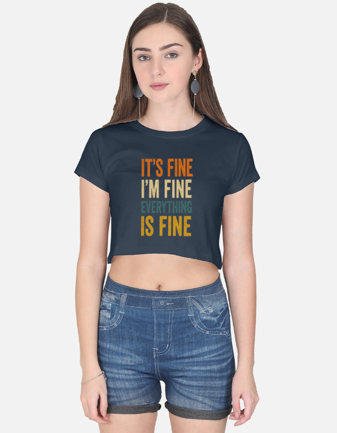 Keep calm and crop on! This “It’s Fine Everything Is Fine” printed crop top is the perfect blend of sarcasm and style. Whether you’re genuinely fine or just pretending, this quirky mood tee adds humor to your everyday wardrobe.