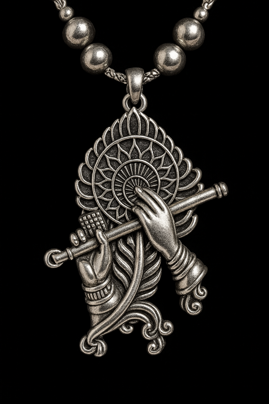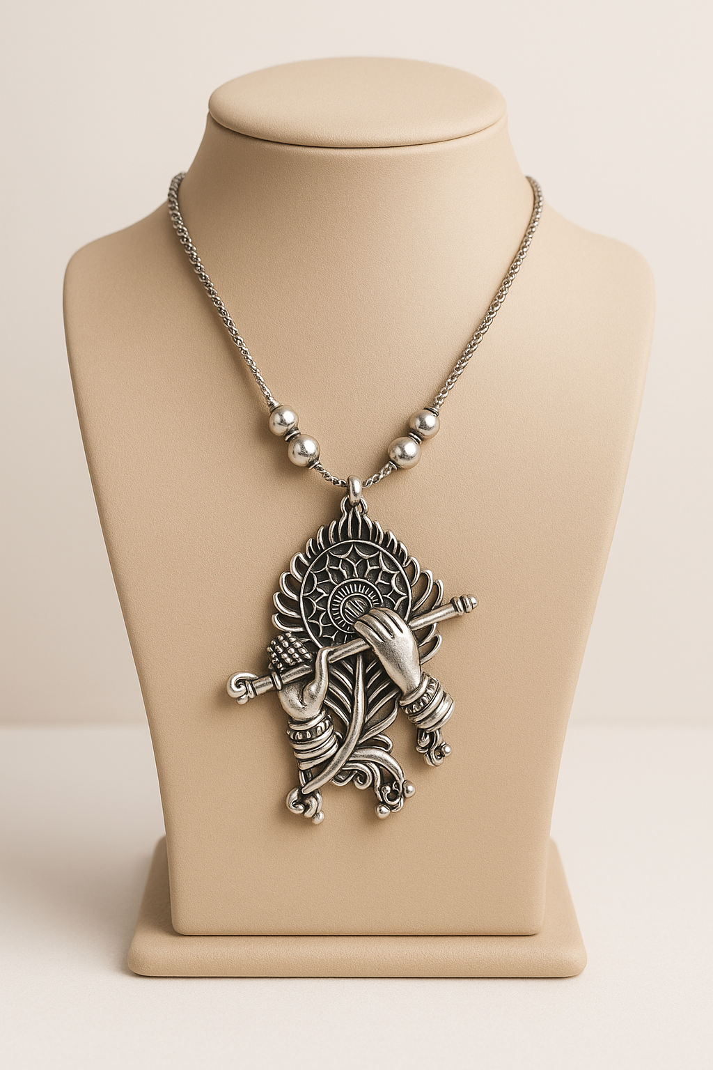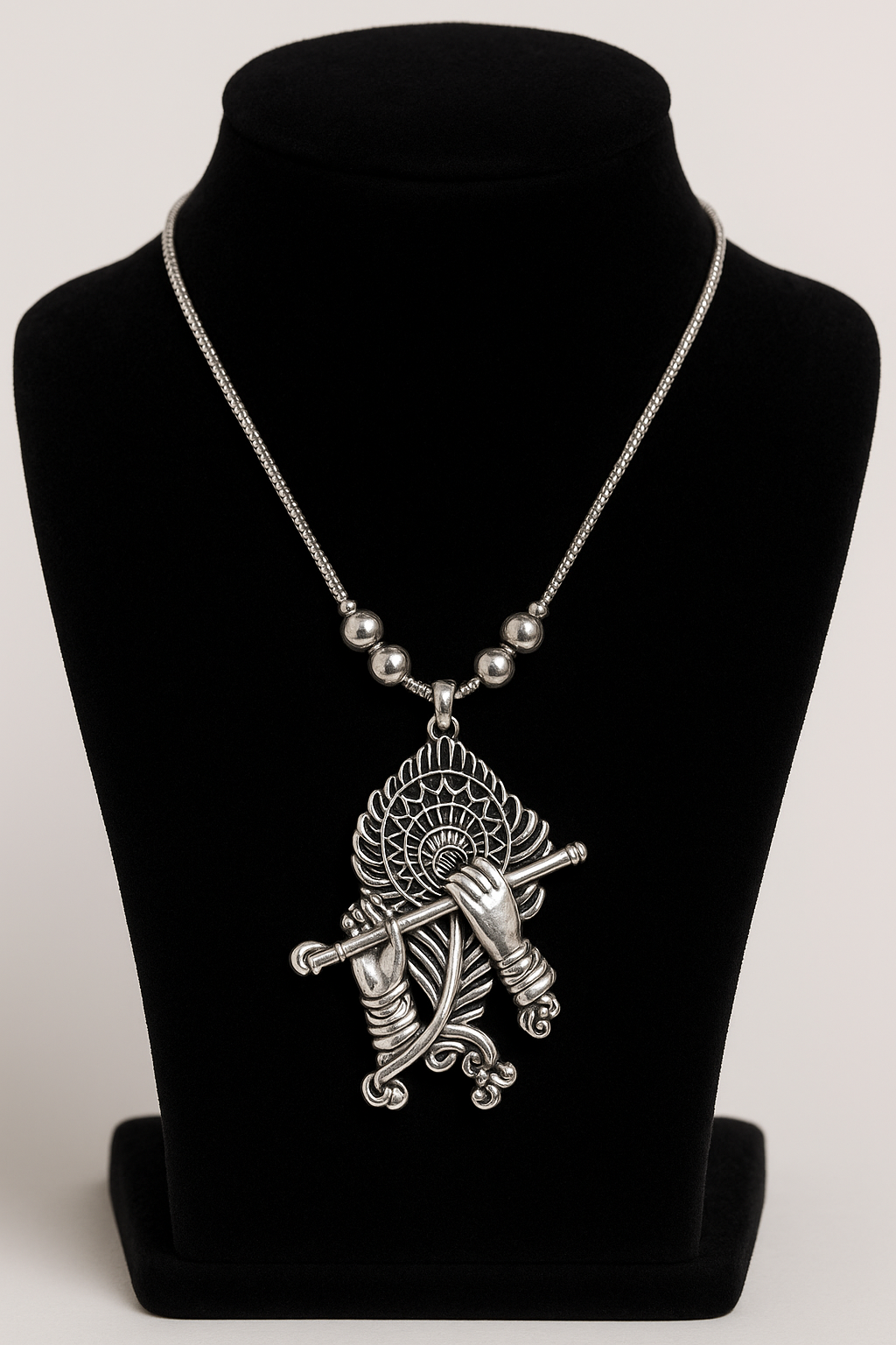 Experience divine elegance with this Premium Oxidised Krishna Flute Pendant Necklace.