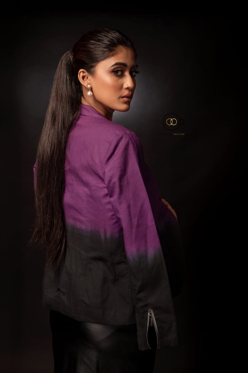 Step into effortless style with our Purple-Black Ombre Linen Blazer.