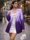 The striking purple ombre effect makes this a standout ombre blazer, created for fearless, fashion-forward styling. As a true statement blazer, it instantly elevates your look whether paired with a dress, crop top, or chic co-ord set. This is more than just a blazer—it’s a bold fashion essential designed to command attention.