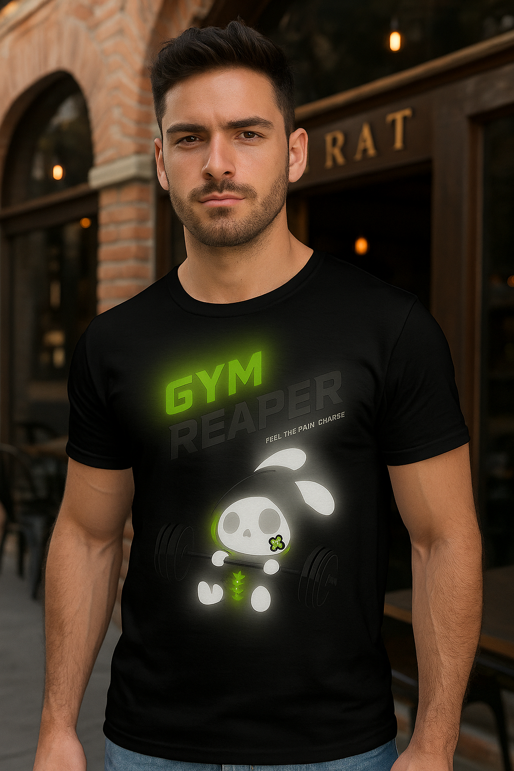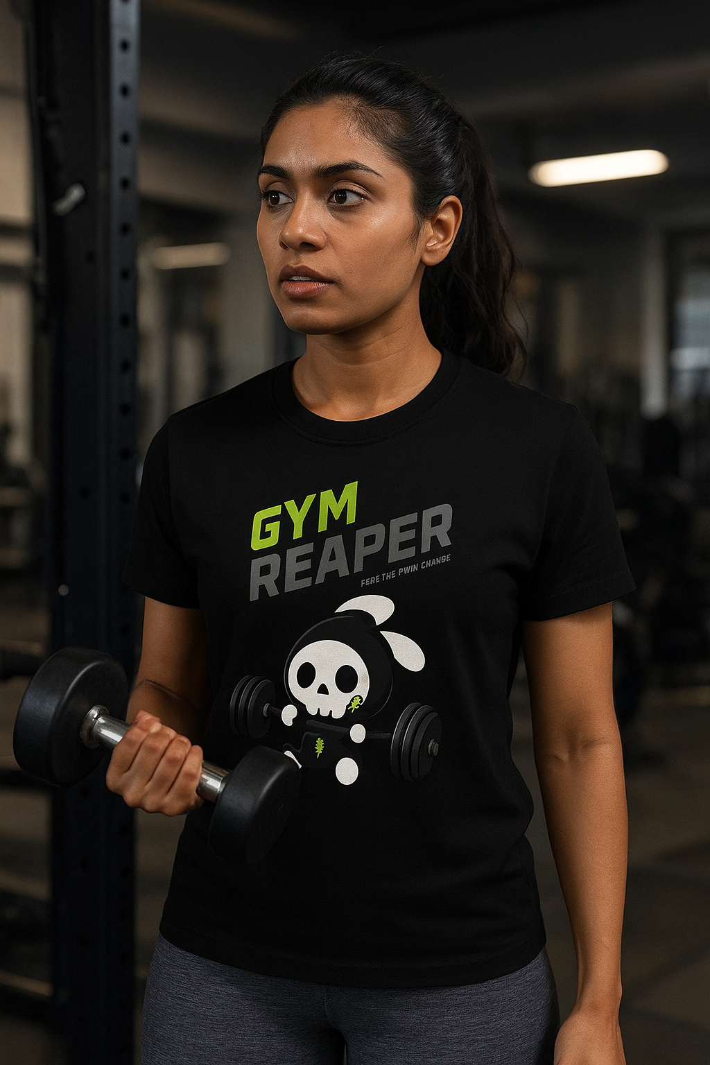 Striking Gym Reaper graphic in neon accents