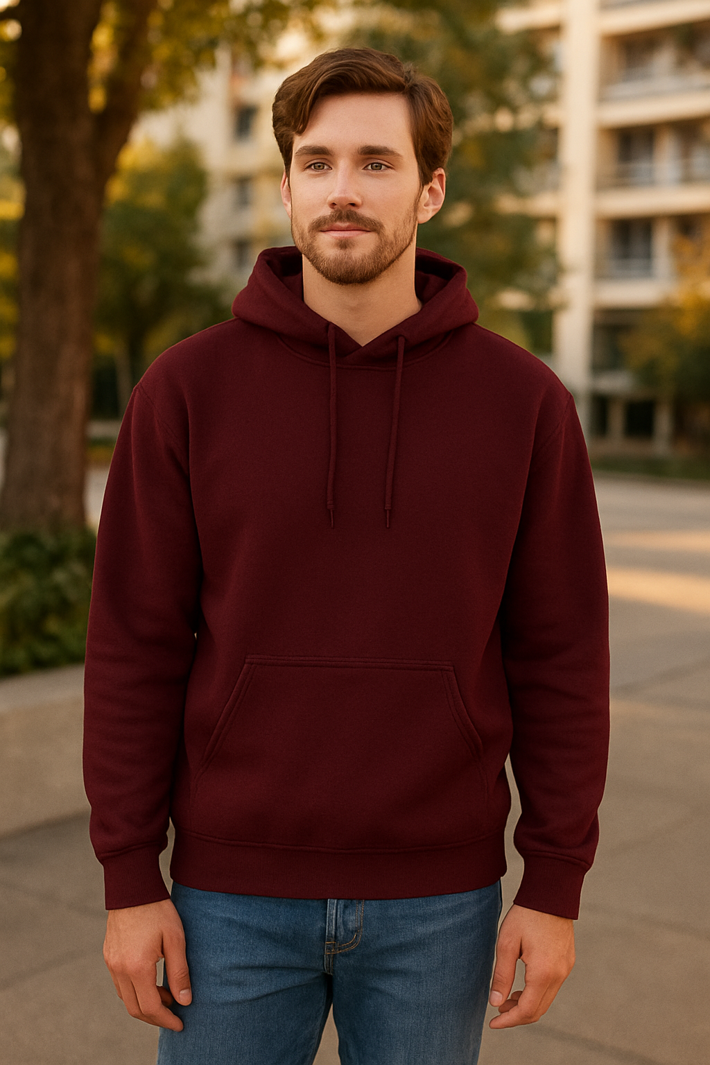 Keywords: premium men’s hoodie, luxury streetwear hoodie, burgundy men’s hoodie, oversized pullover, minimalist streetwear clothing