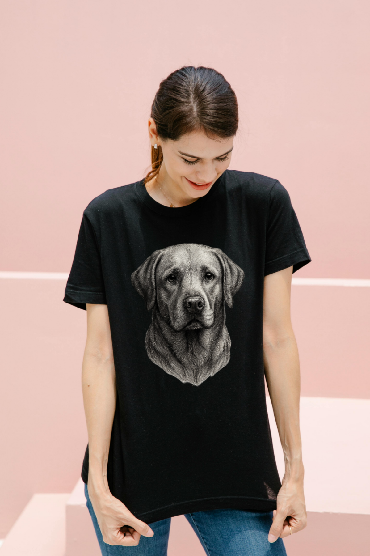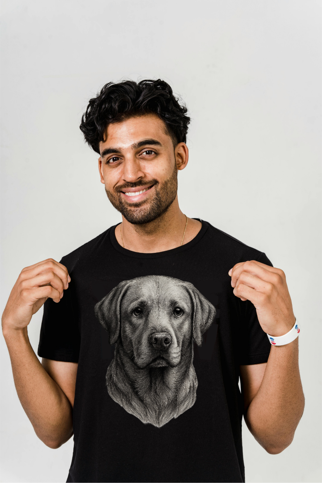 Celebrate the loyalty and love of man’s best friend with this beautifully detailed Labrador retriever portrait tee. The soulful eyes and lifelike design capture pure emotion, making it a must-have for dog lovers.